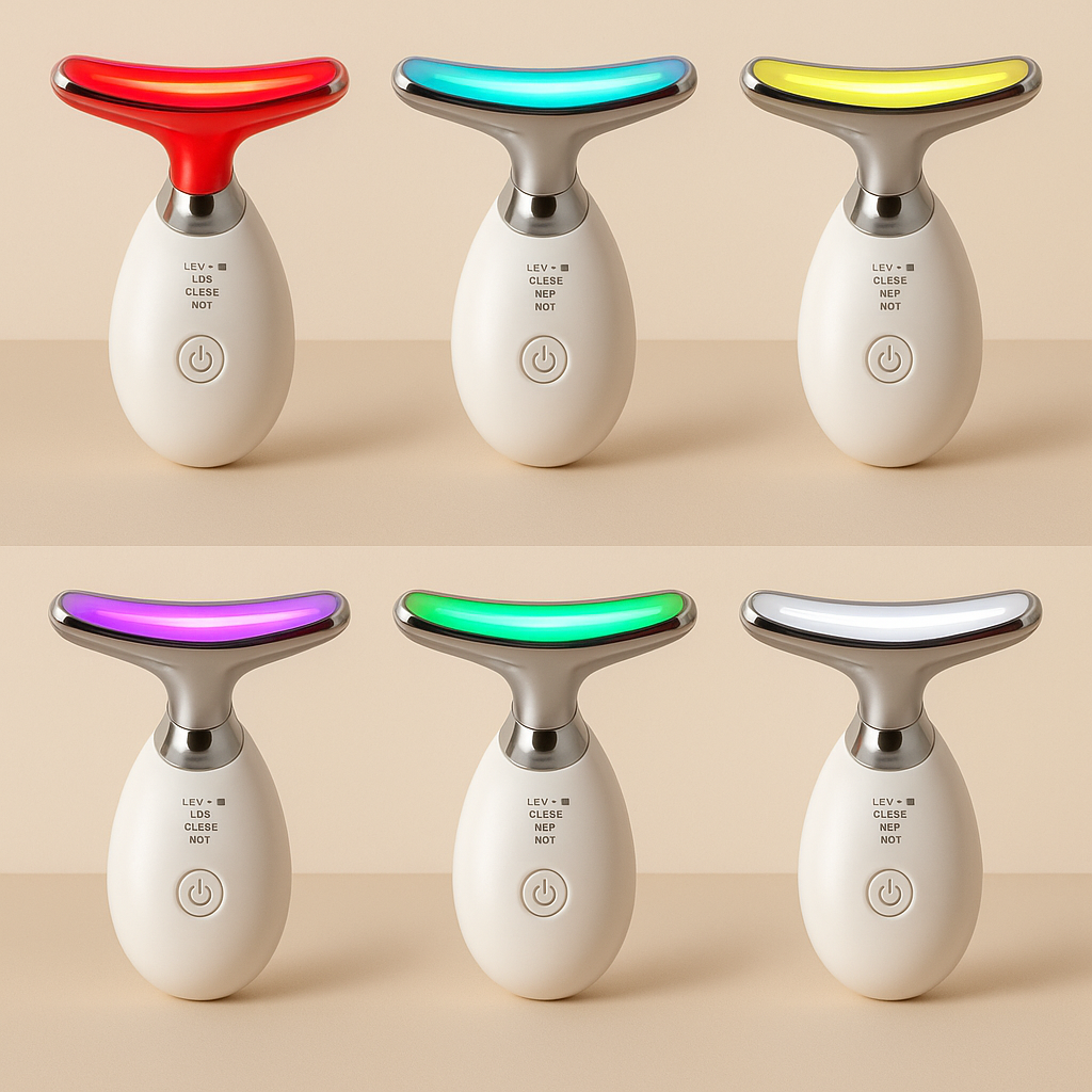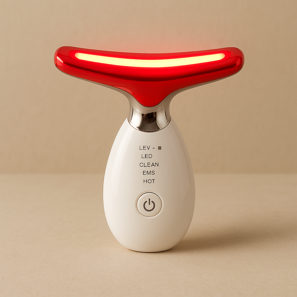 The red light boosts collagen and elastin production, while the vibration massage improves circulation. This helps tighten, smooth and firm the face and neck naturally.